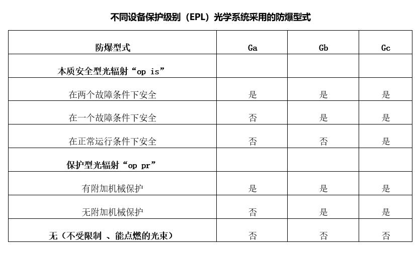 (4)Protection level of intrinsic safety optical radiation equipment(EPL)